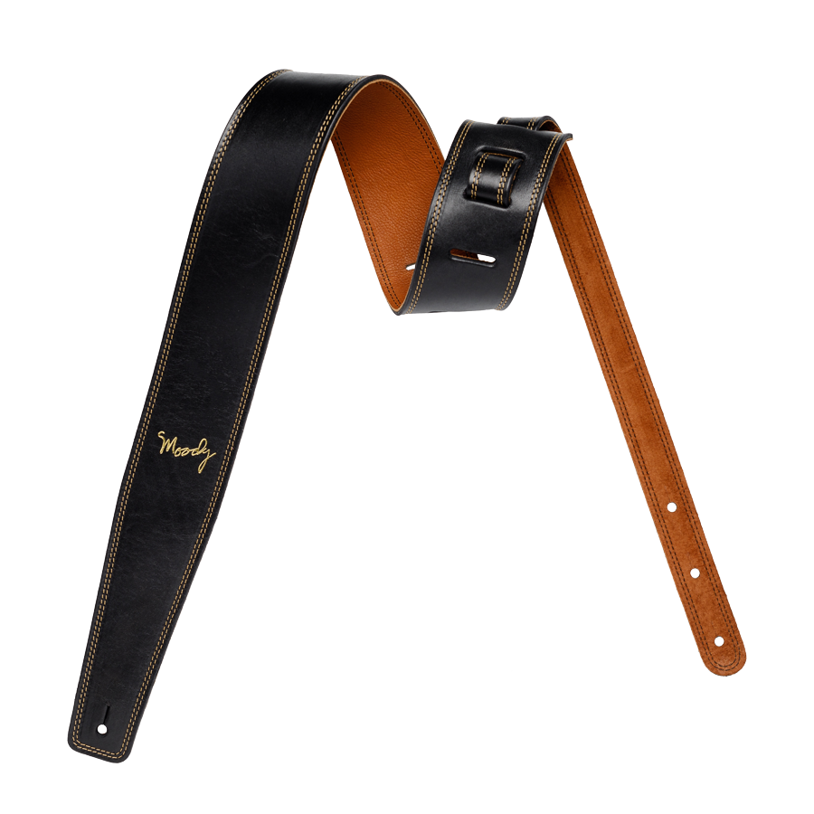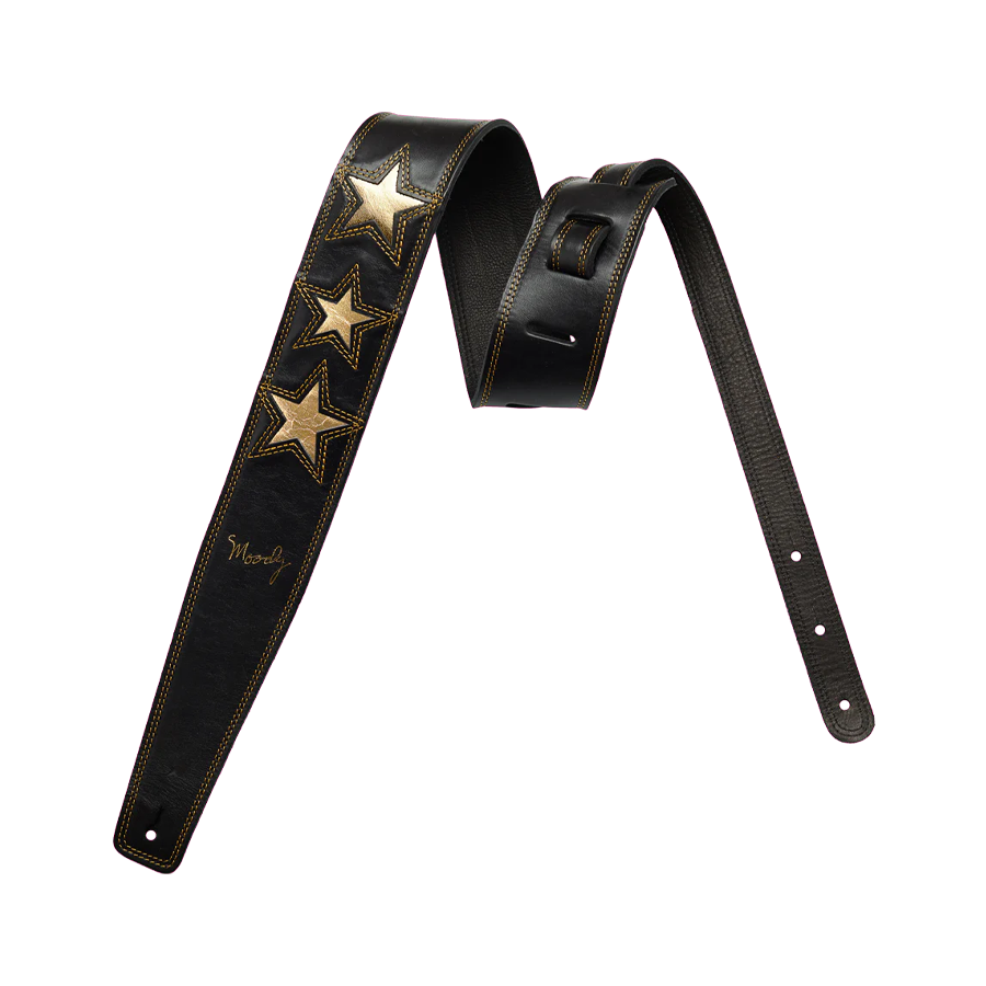 2.5" 3 STAR Leather Backed Strap - Black/Black & three platinum stars