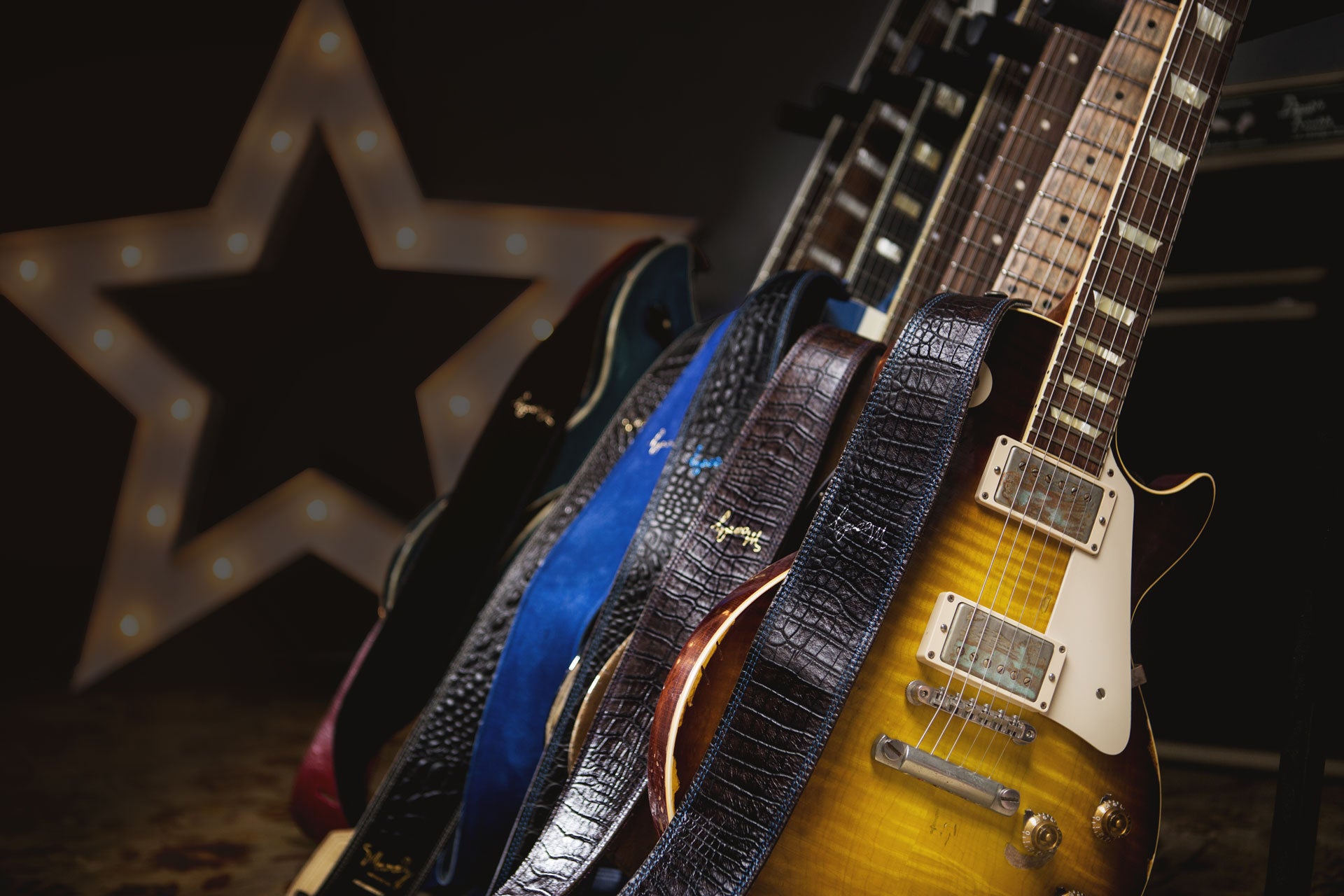 2.5" Faux Gator Leather Backed Guitar Strap - Burnt Orange/Brown